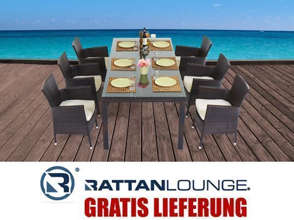 Große Terrassen, Hinterhöfe und Gärten können mit entsprechend großen Sets mit sechs oder mehr. Mit unseren Loungemöbeln werden Garten, Balkon und Terrasse zur gemütlichen Chill-out-Zone. Esstische aus Rattan wirken sehr elegant und stilvoll und werden gerade deshalb als das Trendprodukt im Bereich Gartenmöbel gehandelt.