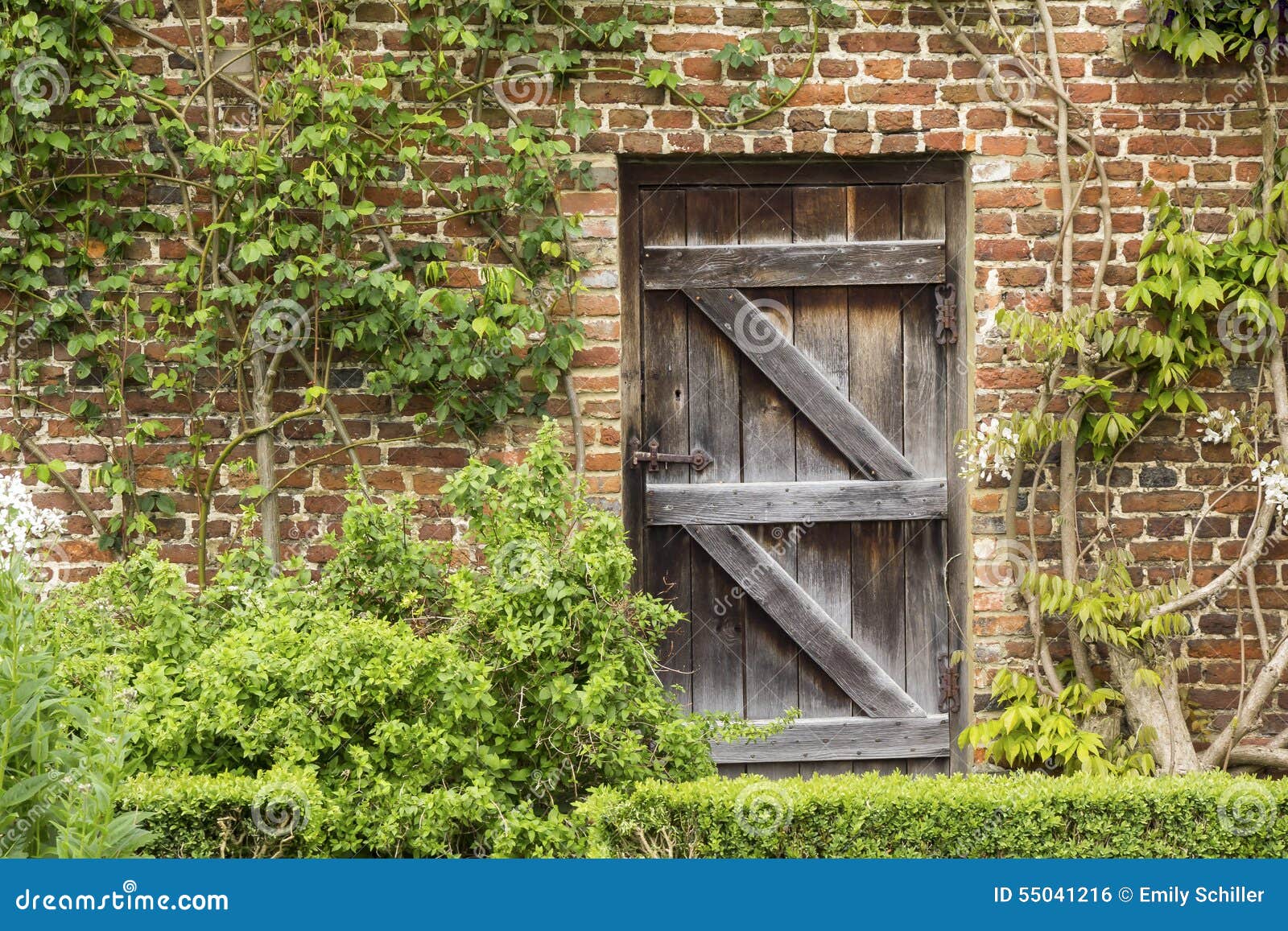 Alte Geschlossene Holztür In Einer Backsteinmauer In Einem ...