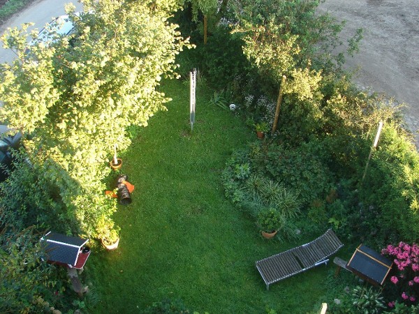 Die kleine is letztens einem schmetterling nachgejagt, natürlich is sie in den sichtschutz gesprungen.